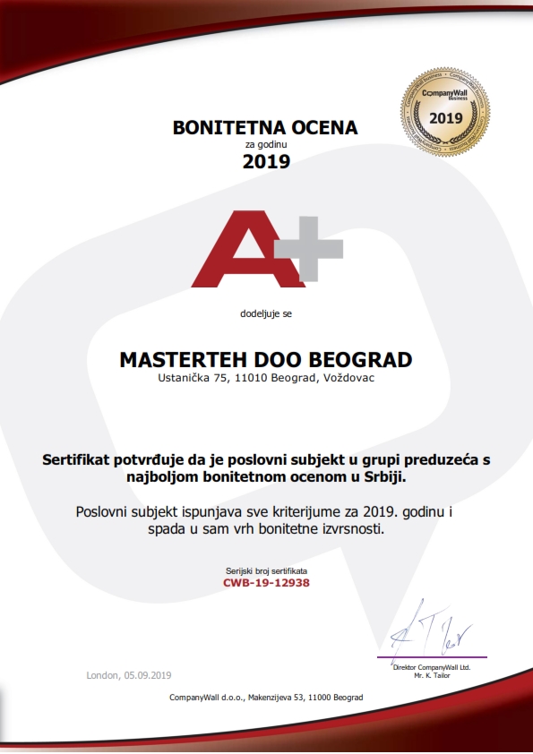 Masterteh d.o.o zadovoljava potrebe kupaca širom sveta. Garantujemo brzo i efikasno reagovanje na potrebe naših kupaca. Masterteh d.o.o pomaže potrošačima da uštede vreme i novac, obezbeđujući im adekvatne proizvode za održavanje svojih sistema. Tim Masterteh d.o.o blisko sarađuje sa klijentima kako bi bolje razumeo njihove izazove i obezbedio rešenja koja smanjuju troškove. Nudimo vam proizvode najvišeg kvaliteta, od vodećih svetskih proizvođača, po najkonkurentnijim cenama. Naš profesionalni tim stručnjaka je uvek na usluzi našim klijentima, sa našim postojećim iskustvom i stalnim usavršavanjem. Zapošljavamo tehničke stručnjake koji imaju iskustva u različitim industrijama i koji razumeju potrebe i izazove sa kojima se naši kupci suočavaju.